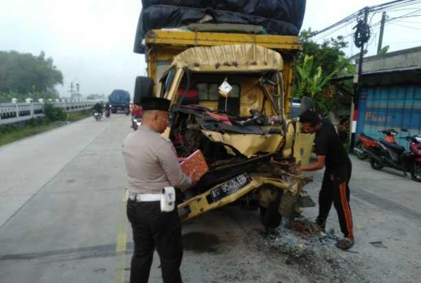 Kecelakaan yang melibatkan dua truk terjadi di sekitar proyek pengecoran jalan nasional di Desa Glagahan, Kecamatan Perak. Rabu (18/1) pagi. Dua truk besar kembali terlibat kecelakaan yang dipicu antrean kendaraan akibat buka tutup jalur. Diduga salah satu sopir mengemudi dalam kondisi mengantuk.