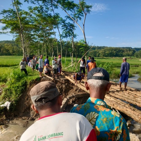 Putusnya duiker di jalan poros Desa Semgede, membuat warga berpikir cepat untuk mencari solusi. Salah satunya, adalah membuat jembatan darurat. Harapannya, jembatan itu bisa jadi solusi sementara agar kendaraan minimal roda dua bisa melintas.