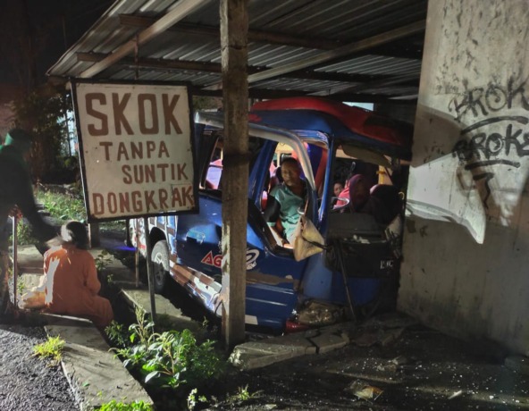 Sebuah minibus elf yang sedang membawa 15 penumpang mengalami kecelakaan di pinggir Jalan Nasional Desa Palrejo, Kecamatan Sumobito Kamis (23/2) dini hari. Akibat kejadian itu, 14 penumpang termasuk sopir mengalami luka-luka dan harus dilarikan ke rumah sakit.