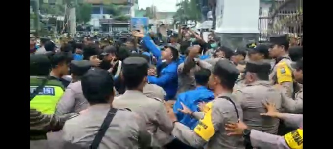 Ratusan mahasiswa yang tergabung dalam Aliansi Cipayung Jombang di depan Pendopo Kabupaten Jombang berujung ricuh Senin (20/3) pagi. Dalam demonstrasi itu, massa menagih janji politik Bupati-Wabup Jombang yang dinilai gagal terlaksana hingga hampir 5 tahun kepemimpinan.