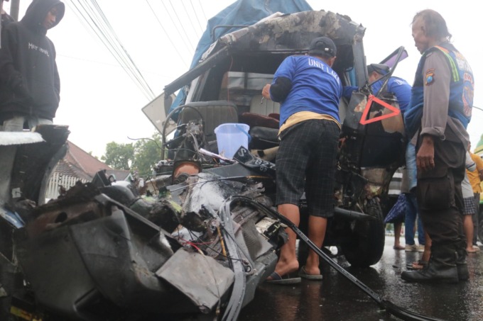 Kecelakaan beruntun melibatkan dua bus, sebuah tronton dan pikap berlangsung di Jalur Arteri Nasional Desa Miagan, Kecamatan Mojoagung Minggu (2/4) sore. Sopir pikap dan empat penumpang bus mengalami luka-luka akibat kejadian itu.