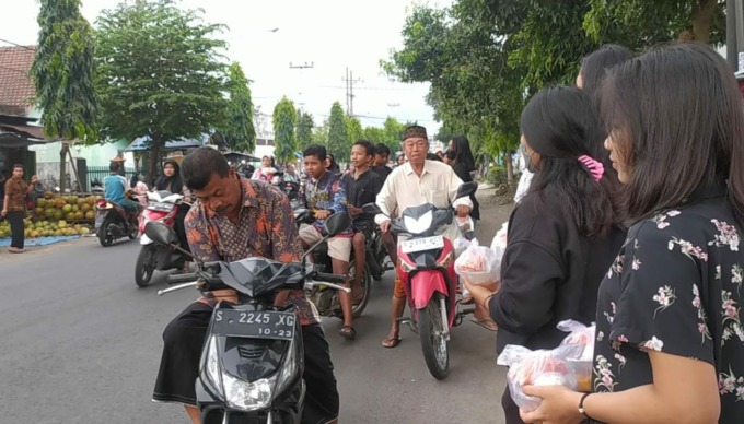 Perayaan Jumat Agung di Gereja Kristen Jawi Wetan (GKJW) Ngoro, Kabupaten Jombang terasa spesial (7/4). Puluhan pemuda umat kristiani mengisinya dengan kegiatan pembagian takjil bagi umat muslim yang tengah menjalankan ibadah puasa Ramadan.