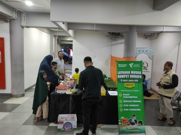 Dompet Dhuafa Jawa Timur membuka pelayanan pemudik di Rest Area 695 A sebagai bentuk respon dalam melayani pemudik yang ingin beristirahat sejenak serta berziswaf.