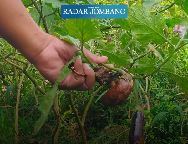Petani terong di Desa Gajah, Kecamatan Ngoro mengalami gagal panen. Menyusul tanaman terongnya terserang jamur. Akibatnya petani merugi besar.