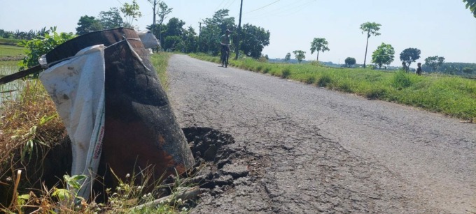 Kondisi jalan kabupaten di Desa Jatiwates, Kecamatan Tembelang jadi rasan-rasan pengguna jalan. Di salah satu titiknya, bahu jalan ambles. Warga menandainya dengan drum bekas.